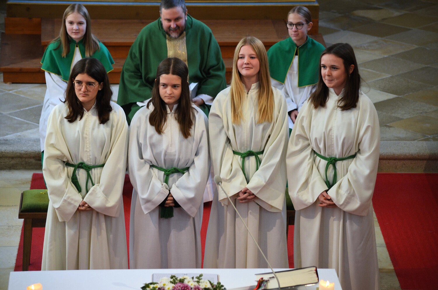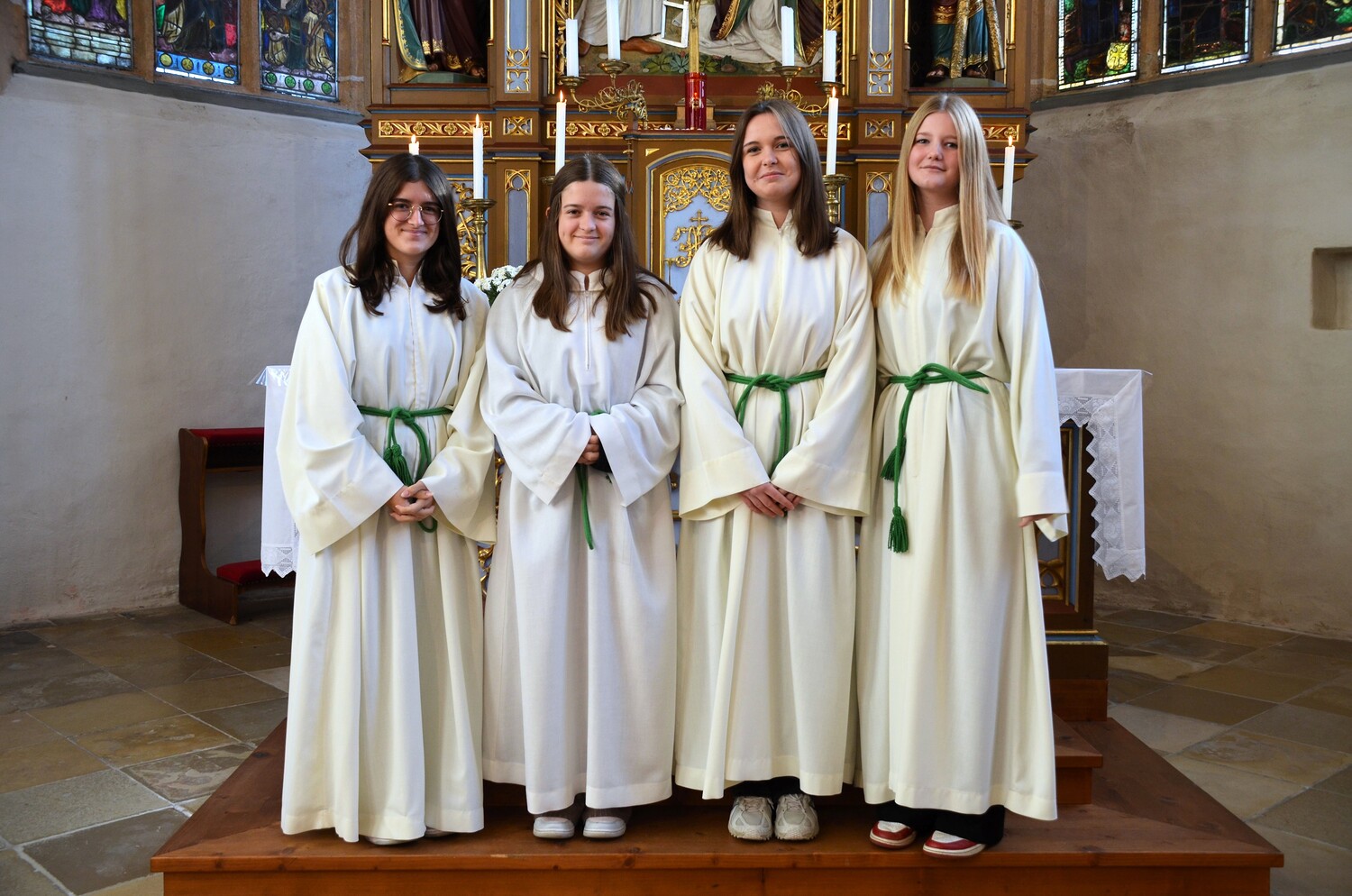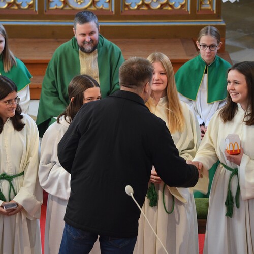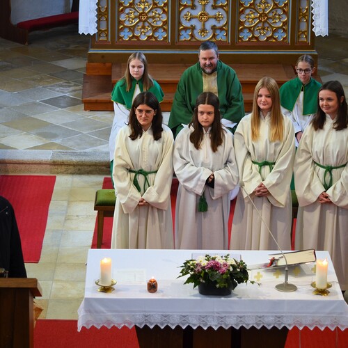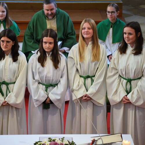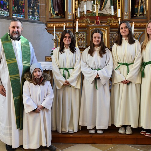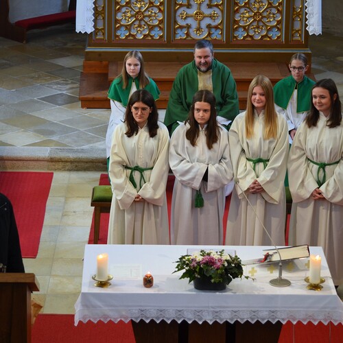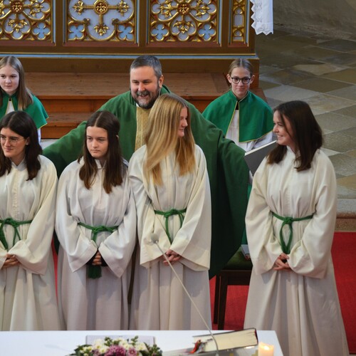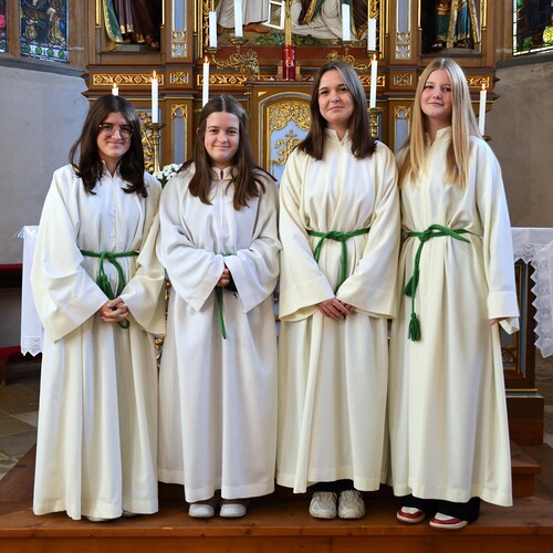 Im Zuge der Sonntagsmesse haben wir uns bei Verena und Nadine Bichl, Franziska Damberger und Antonia Hanni für ihren langjährigen Dienst als Ministrantinnen bedankt und sie aus ihrer Funktion verabschiedet. Wir wünschen den vier jungen Damen, dass sie ihren Platz in unserer Kirche und Pfarre finden und einnehmen werden.